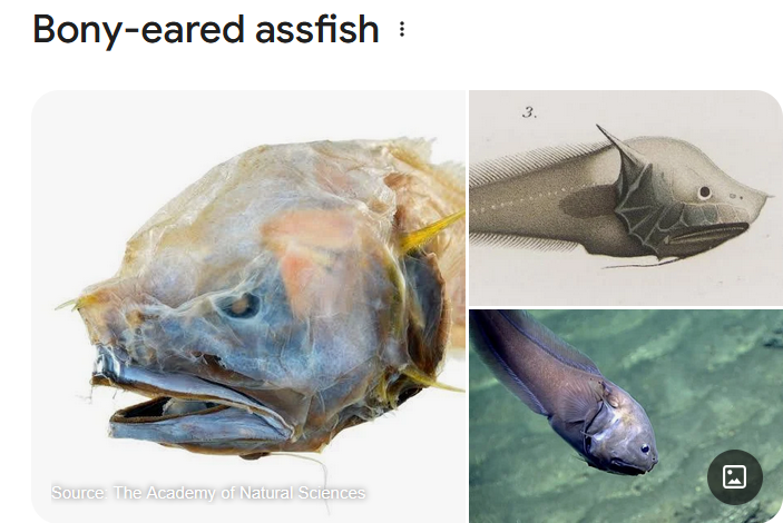 The bony eared assfish species of cusk-eel found in tropical and subtropical oceans at depths of from 1,171 to 4,415 meters. It has been found as far north as Queen Charlotte Sound off British Columbia’s coast. This species can grow up to 37 centimeters.